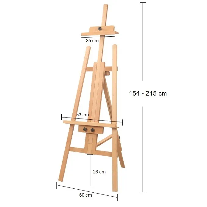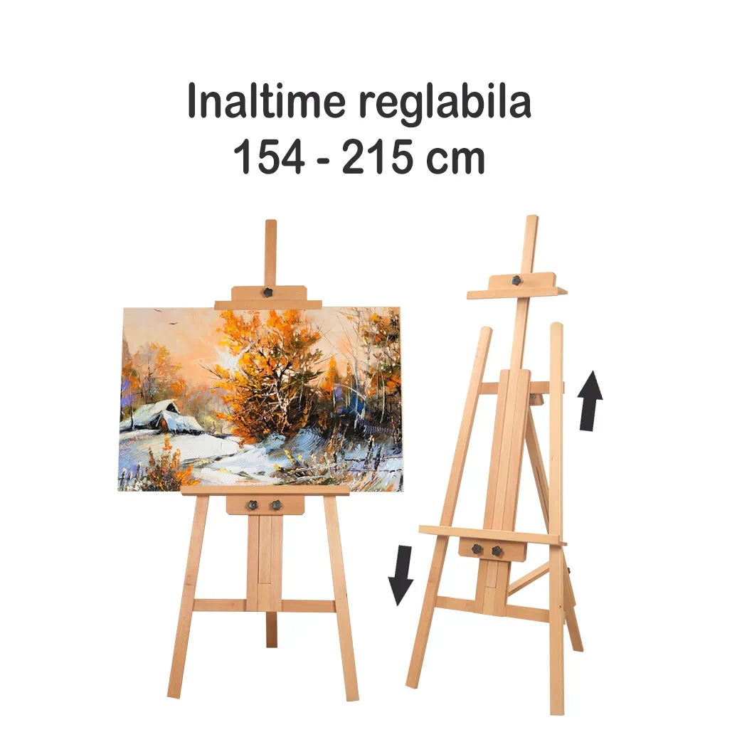 Sevalet pictura profesional din lemn de fag, inaltime reglabila 154-215 cm, pentru panze mari de pana la 175 cm, culoare natur, W04C